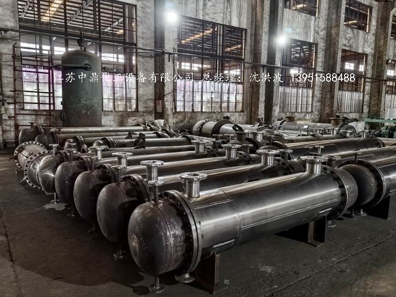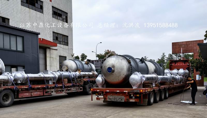 江蘇中鼎化工設(shè)備有限公司承接淮南某電子材料有限公司的55臺(tái)列管式換熱器制造過(guò)程及發(fā)貨現(xiàn)場(chǎng)。