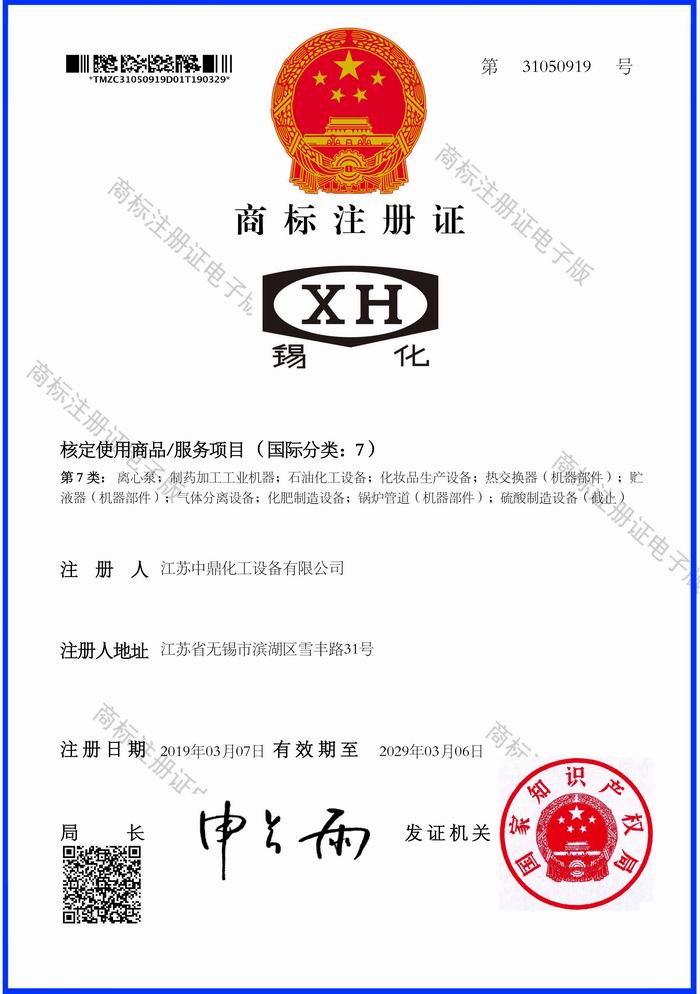 【中鼎喜訊】2019年4月8日經(jīng)過(guò)多年努力,中鼎企業(yè)終于拿到曾經(jīng)由1985年12月04日無(wú)錫縣化工設(shè)備廠注冊(cè)的“錫化”牌商標(biāo)的圖形商標(biāo),圓滿完成“錫化”老品牌的有效保護(hù)。為中鼎企業(yè)樹(shù)立品牌打下堅(jiān)實(shí)的基礎(chǔ)!